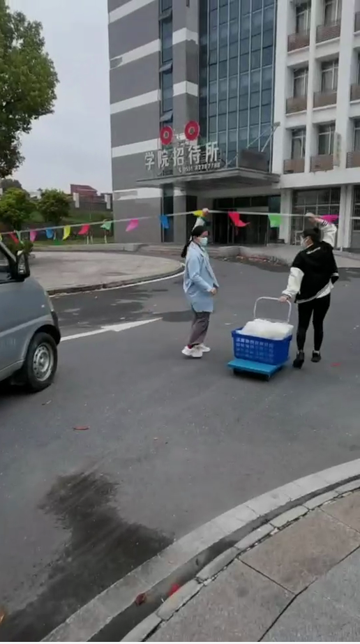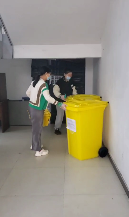 经过志愿服务工作简短培训后,许老师3月15日晚7点即到达临时隔离点工作岗位,开始了为期一周的志愿服务工作。根据安排,她的志愿服务工作内容主要是:按照疫情防控要求标准开展各项工作、确保及时供给学生们的一日三餐、传达并安排隔离点学生的核酸检测、学生们生活用品接收传送、与学生沟通交流、以及处理其他突发情况。当穿上隔离服的那一瞬间,许老师就明白了肩上的那份责任,事关校园师生的生命健康安全,容不得一丝一毫的马虎!