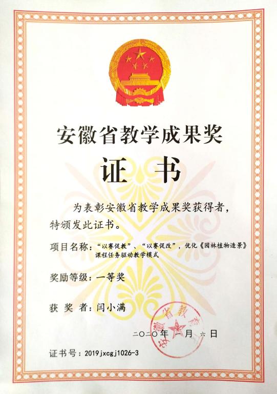 付出总有汇报,“赠人玫瑰,手有余香”,闫小满多次获得“优秀教师”“年度先进个人”“优秀实验员”“优秀共产党员”“优秀社团指导老师”“三八红旗手”等称号; 2018年全国高等职业院校教学能力大赛“一等奖”,2020年获省级教学成果“一等奖”;2022年获省级“教坛新秀”;连续四年教学质量考核优秀。