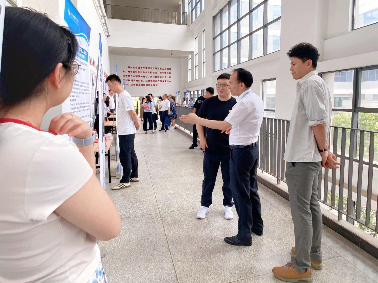 6月11日下午,2025年“科技活动周”博士产学研成果展在汇心湖校区教学北楼二楼成功举办。校党委全体委员来到现场参观指导,校党委书记王杰才,党委副书记、校长檀明与博士们深入交流,共话科技创新与成果转化,现场学术氛围浓厚,互动热烈。