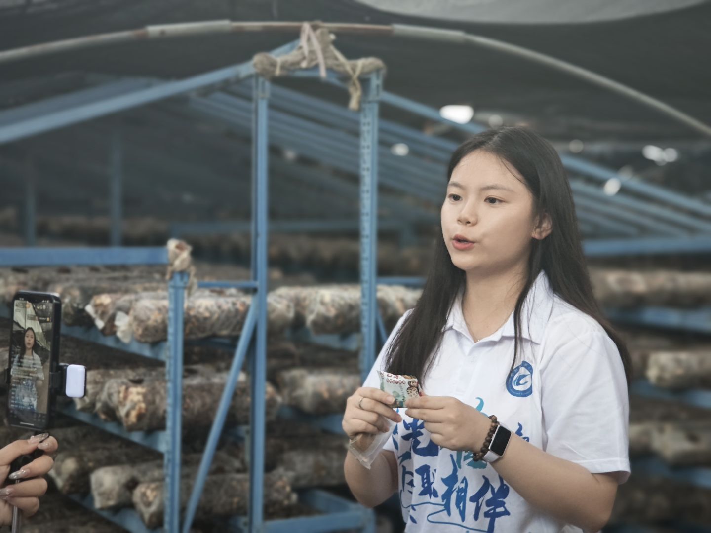 针对金寨县红糖姜茶、香菇酱等特色农产品品牌知名度低、销售渠道单一的问题,青禾守护队创新性地开展了“直播+溯源”助农行动。团队在金寨县乡村振兴农产品体验馆、俊达食品加工厂、大别山山珍基地等产地搭建起临时直播间,邀请相关负责人现场演示生产流程,让消费者直观了解产品背后的故事。特别值得一提的是,在伟德官网2024年西部计划志愿者臧罗兰同学的积极联络下,团队还走访了燕子河石斛基地和富东生态农业发展有限公司,深入了解石斛种植技术和俏俏果牌香薯干生产工艺,将这些优质农产品的生产全过程通过直播呈现给消费者。同时,团队在出发前制作“溯源二维码”,实践现场与企业对接,力争实现消费者扫码可查看种/养殖记录、检测报告等,帮助企业实现“从田间到舌尖”的透明化。