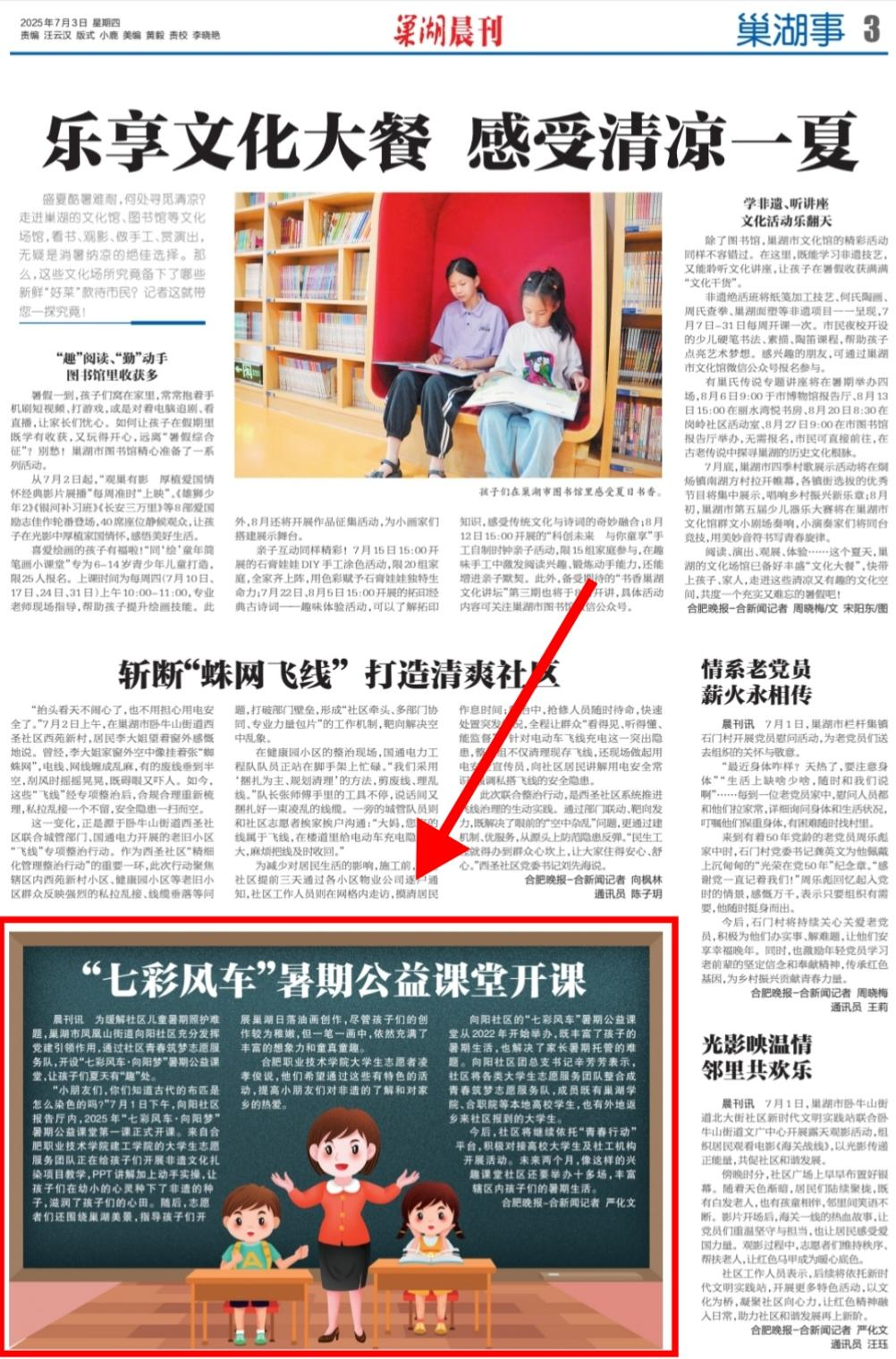 6月30日-7月6日,伟德官网建筑工程学院“微光成炬 一路向阳”实践团走进巢湖市凤凰山街道向阳社区,开展为期一周的“七彩风车・向阳梦”暑期公益课堂活动。7名实践团成员带着精心设计的课程方案,为社区儿童带来了一段充实而有趣的学习时光。