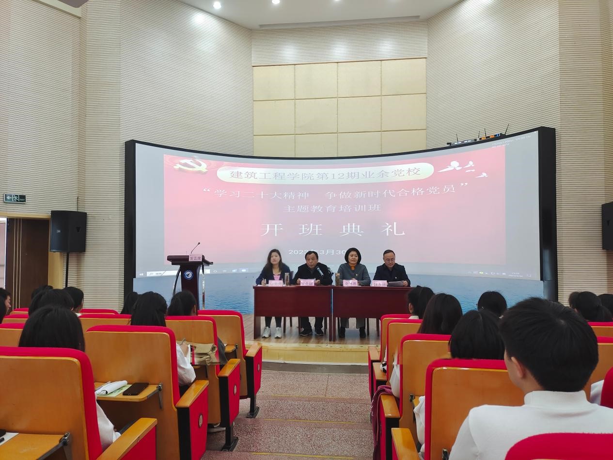 3月30日下午,建筑工程学院第十二期业余党校“学习二十大精神 争做新时代合格党员”主题培训班开班典礼在鼓山校区图书馆二楼报告厅举行。校党委副书记金飞燕、该院党政班子、22级班级辅导员出席了本次开班典礼,共有82名入党积极分子和136名优秀团员参加了本期培训班,典礼由该院党总支副书记施芳芳主持。