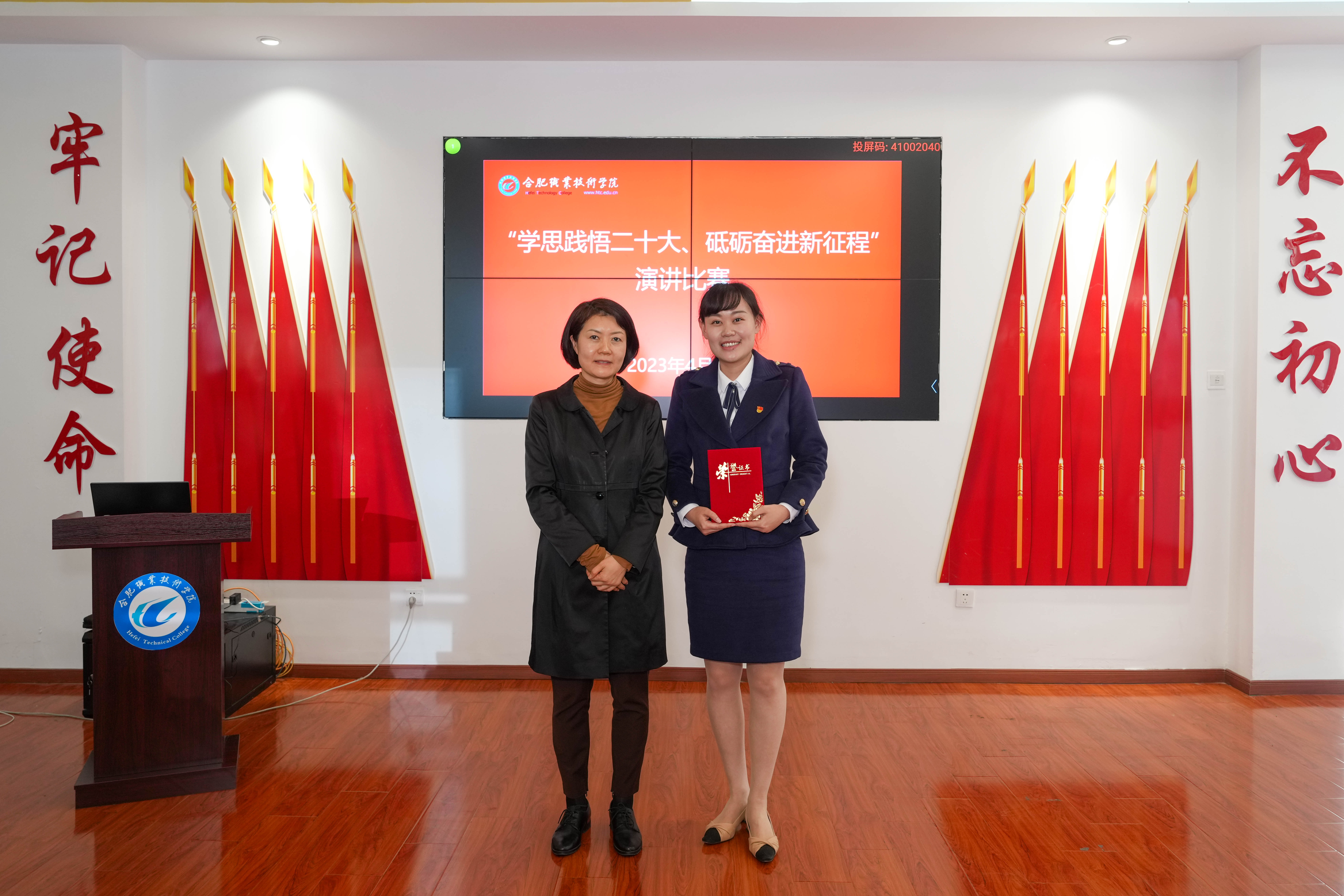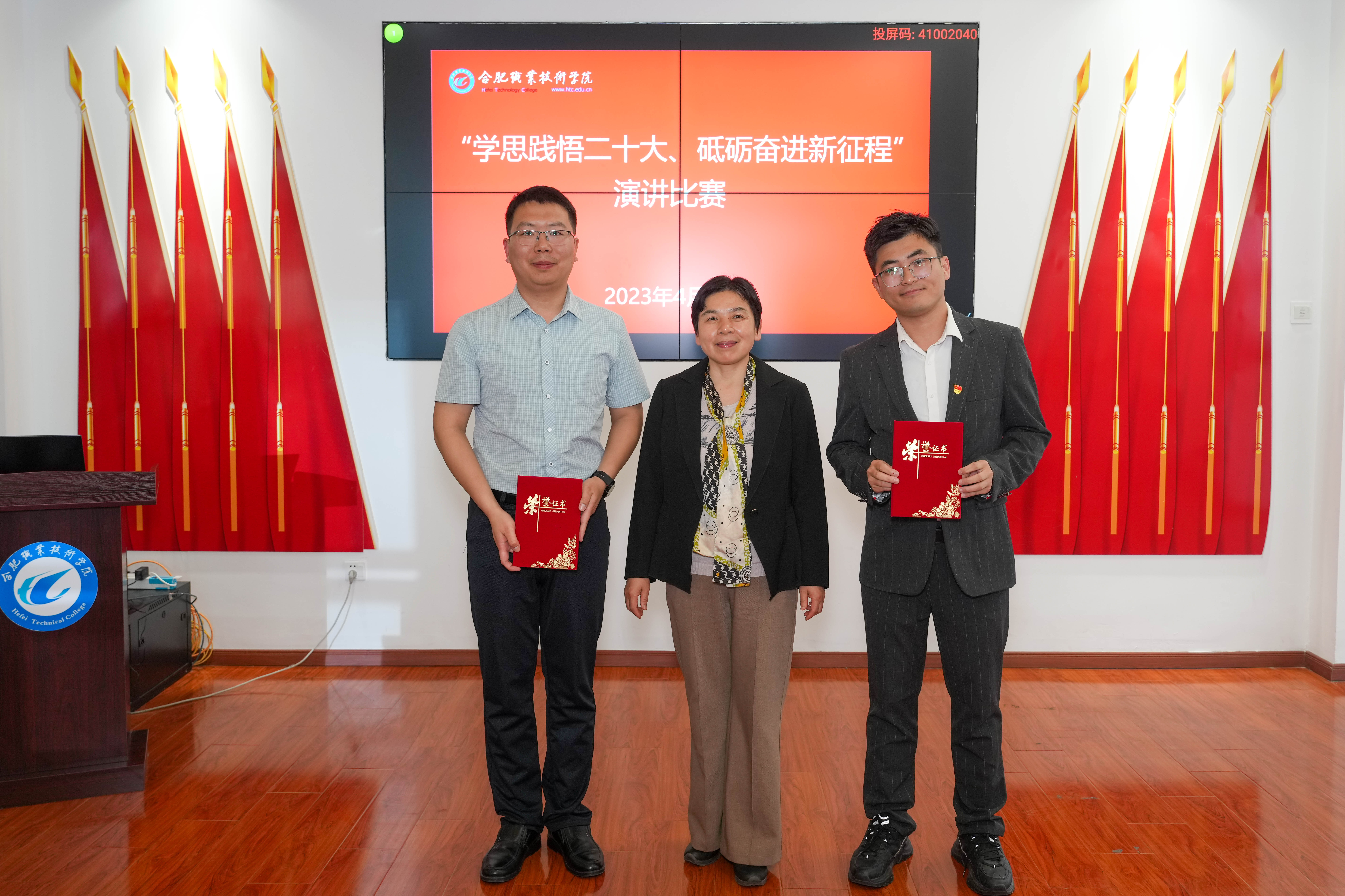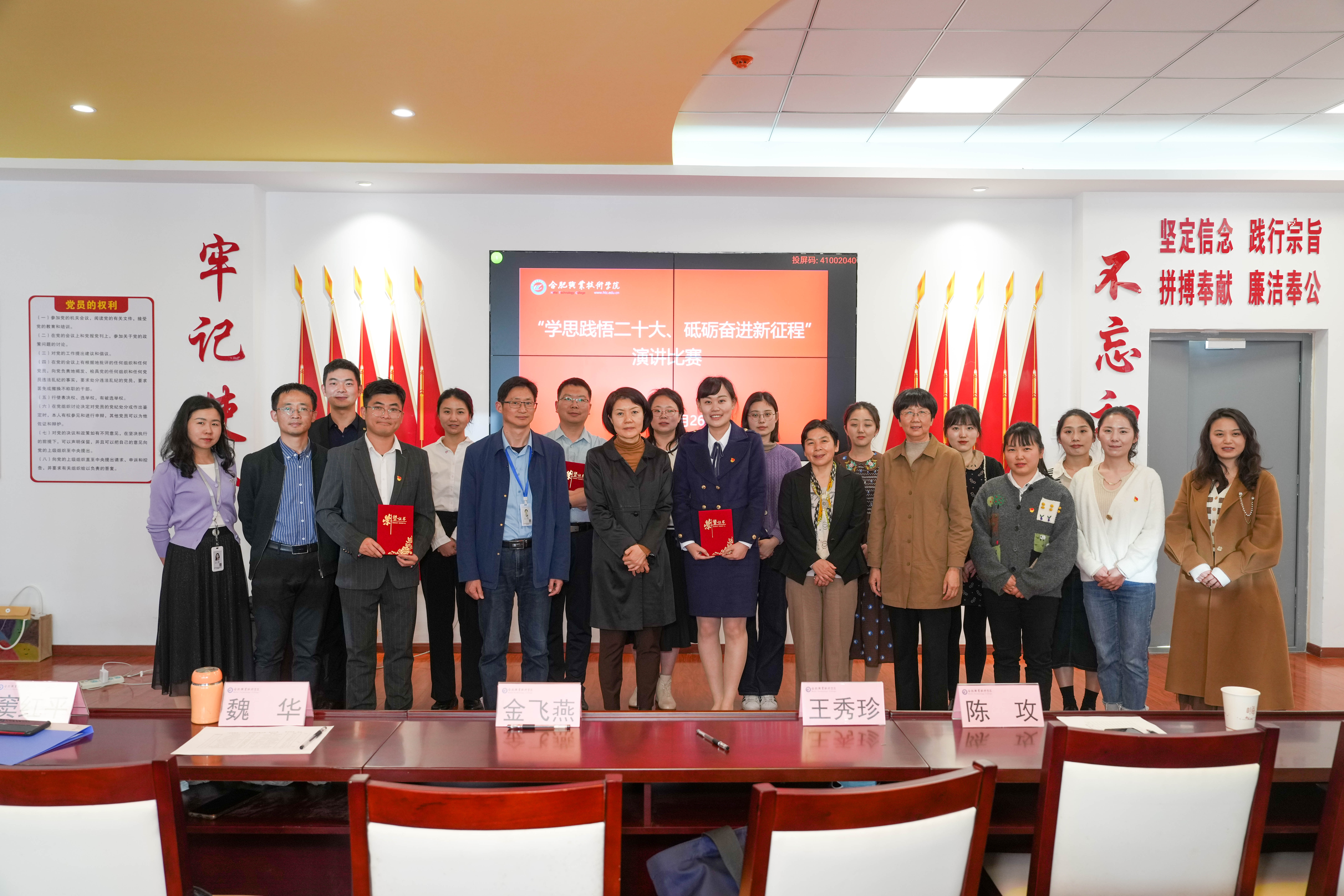 为进一步深入学习宣传贯彻党的二十大精神,引导伟德官网教师强化学思践悟,牢记使命担当,展现伟德官网教师爱党爱国、自信自强、昂扬进取的精神风貌,4月26日下午,由伟德官网组织人事部、宣传统战部共同组织的“学思践悟二十大 砥砺奋进新征程”主题演讲比赛在经贸楼党性体验馆举办。校党委副书记金飞燕,校党委委员、宣传统战部长魏华,校工会主席王秀珍,教务处处长窦红平,组织人事部副部长陈攻来到现场担任评委并为获奖选手颁奖。来自直属分党委、各二级学院党总支、马克思主义学院(筹)党支部推荐的共12名老师参加了本次比赛。