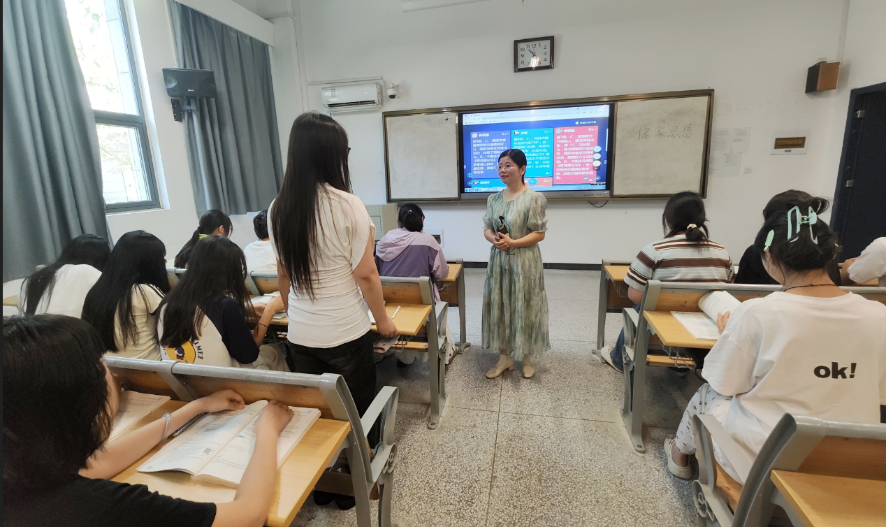 在教学过程中,金玲老师积极推行“以学生为中心”的教学理念,大力推进课堂教学改革。她打破传统“教师讲、学生听”的单一模式,在《应用文写作》课程中构建“任务驱动+实景演练”教学模式,通过设计职场情境、模拟工作场景,让学生在真实语境中掌握实用写作技能;在《中华优秀传统文化》课程中,她注重以读促悟、以思导学,通过组织经典诵读活动,悉心指导学生参与中华经典诵写讲大赛并获得佳绩。在授课过程中,她善于引导学生跳出文本表层,深入挖掘文化背后的历史脉络与思想内涵,以启发式教学激发学生对优秀传统的真正热爱,同步提升学生的文化理解力与批判性思维。除了课堂上的启发与引导,她也格外重视对学生综合素养的培育。无论是学生的逻辑思维、表达沟通还是人文素养,她总是耐心引导、悉心点拨,成为学生成长路上可信赖的引路人。