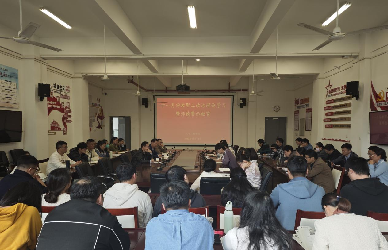 11月13日下午,机电工程学院在机电楼二楼会议室组织召开十一月份教职工政治理论学习暨师德警示教育,学院全体教职工参加,会议由该院党总支副书记(主持工作)丁迎春主持。