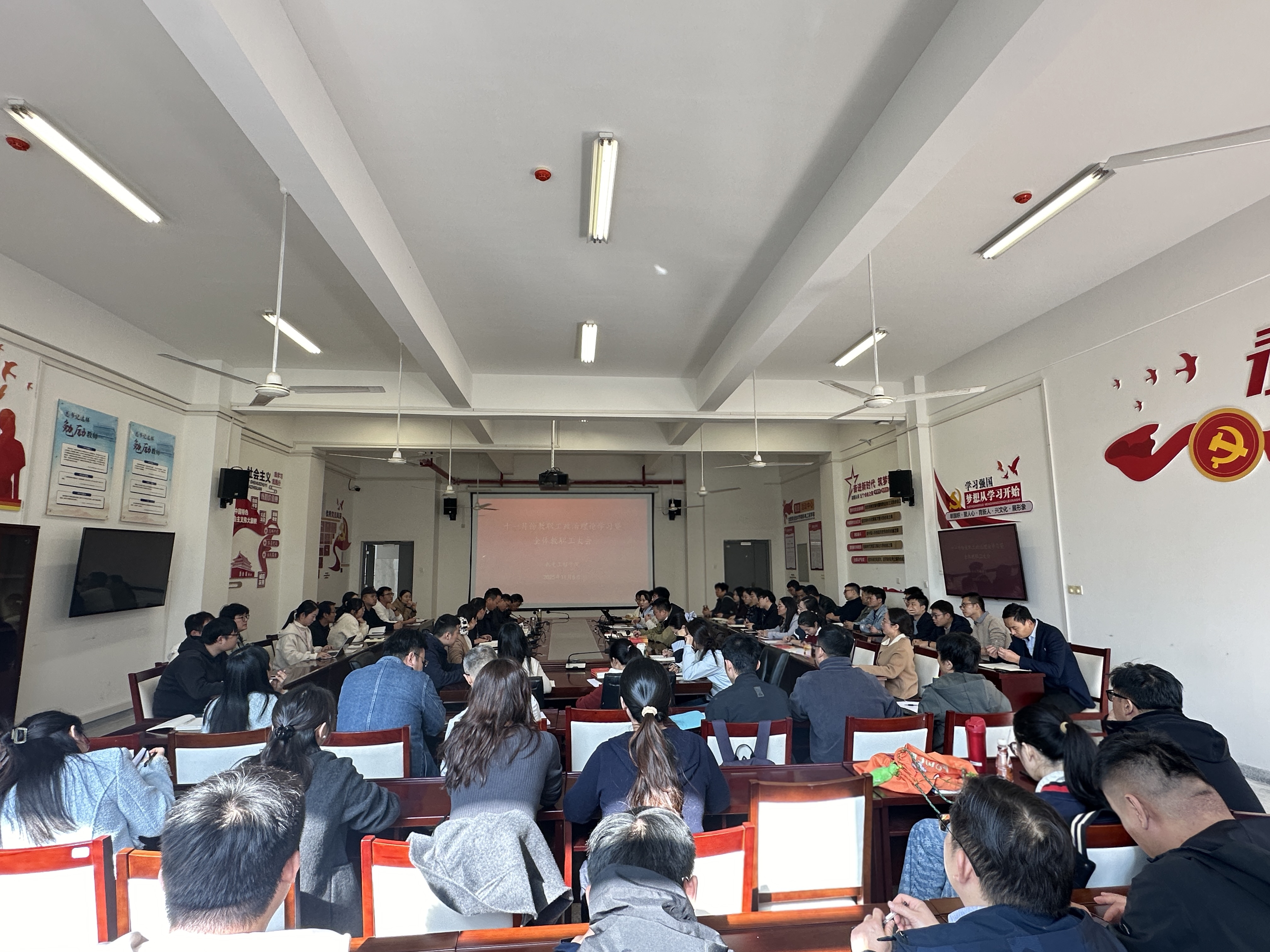 11月5日下午,机电工程学院在机电楼二楼会议室组织召开十一月份教职工政治理论学习暨全体教职工会议,学院全体教职工参会,会议由该院党总支副书记(主持工作)丁迎春主持。