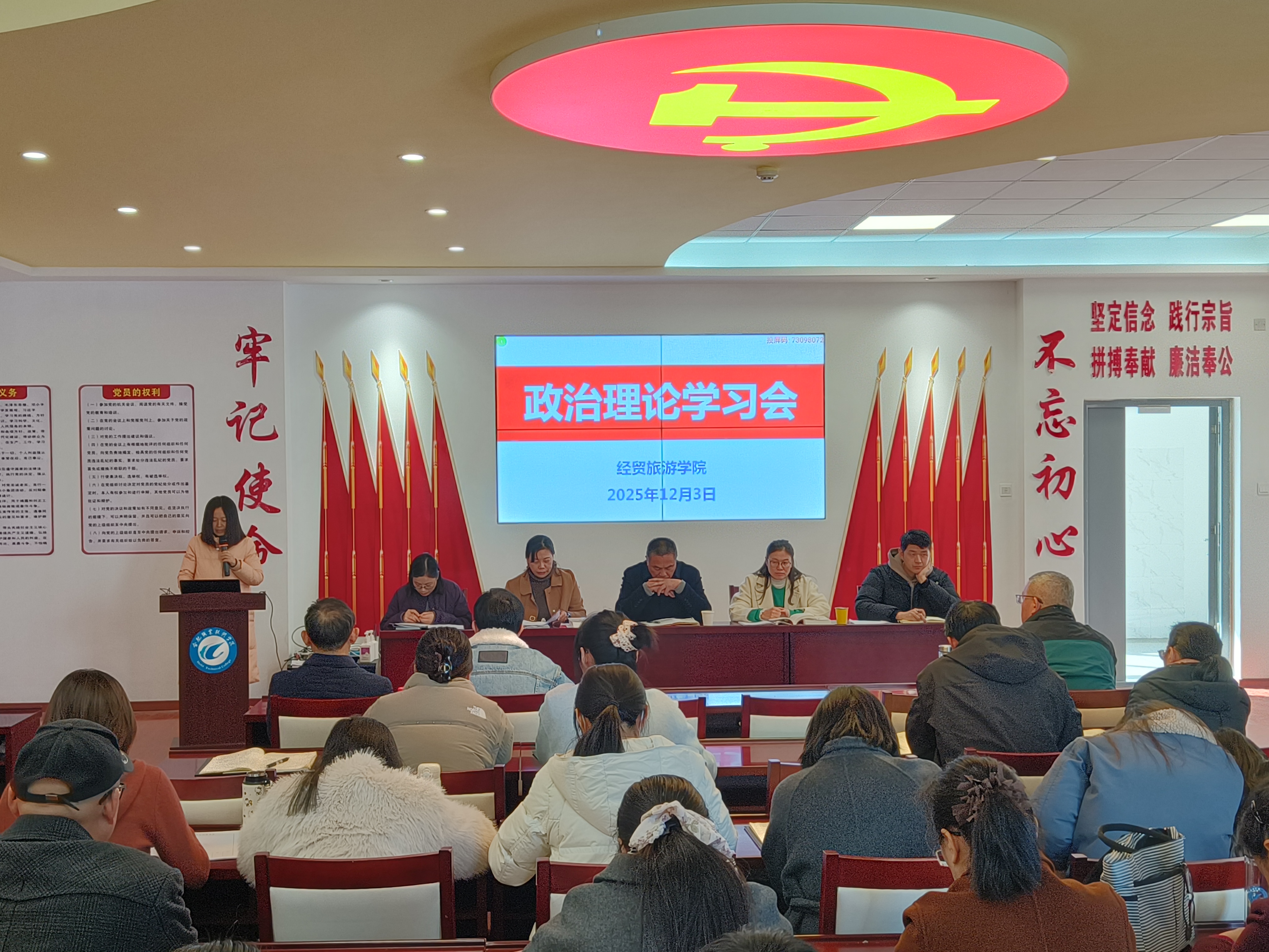 12月4日下午,经贸旅游学院在党性体验馆召开政治理论学习会暨全体教职工大会。全体教职工参加会议,校党委委员、副校长范家茂出席会议并讲话,会议由该副院长付晓兰主持。
