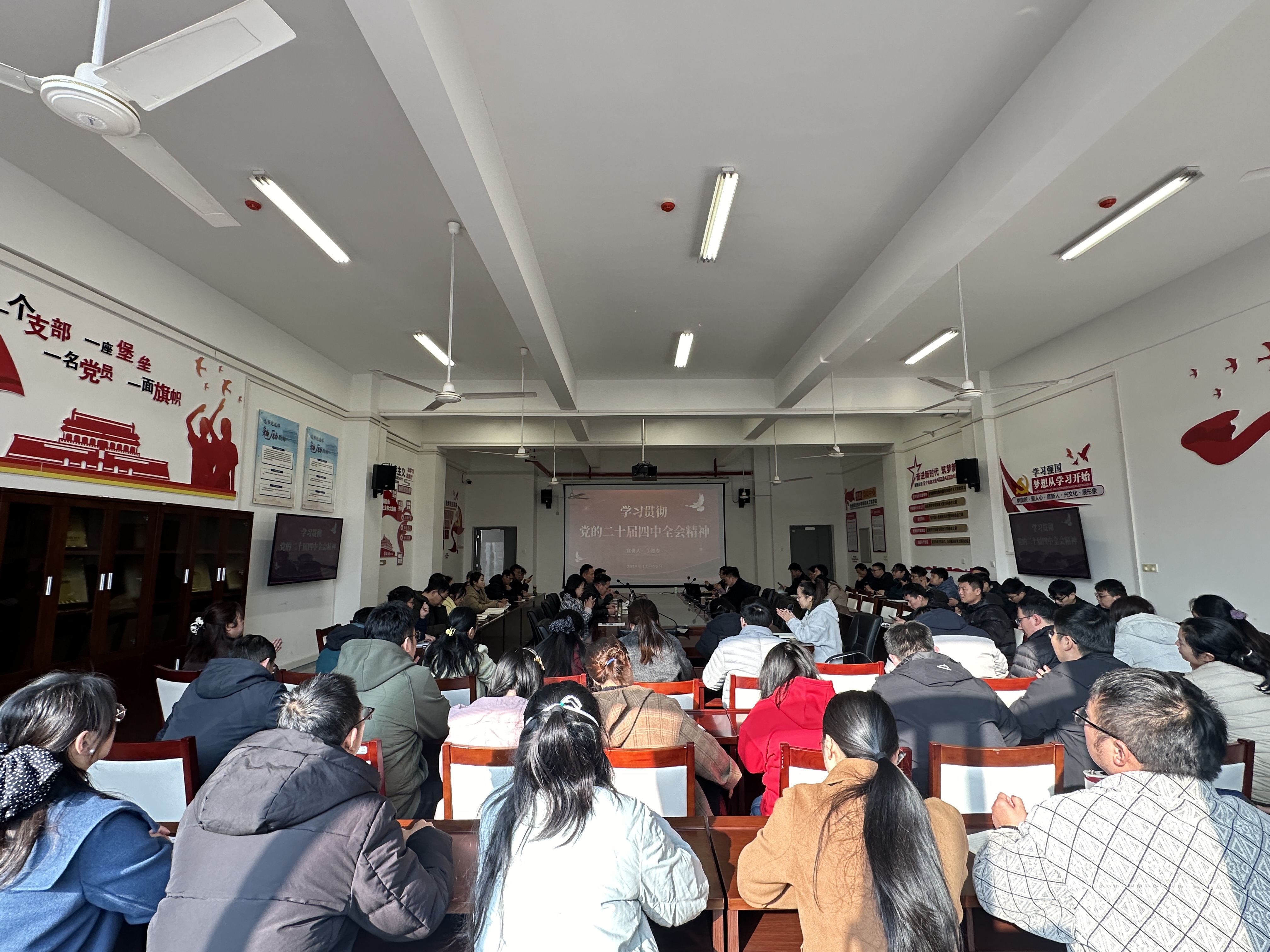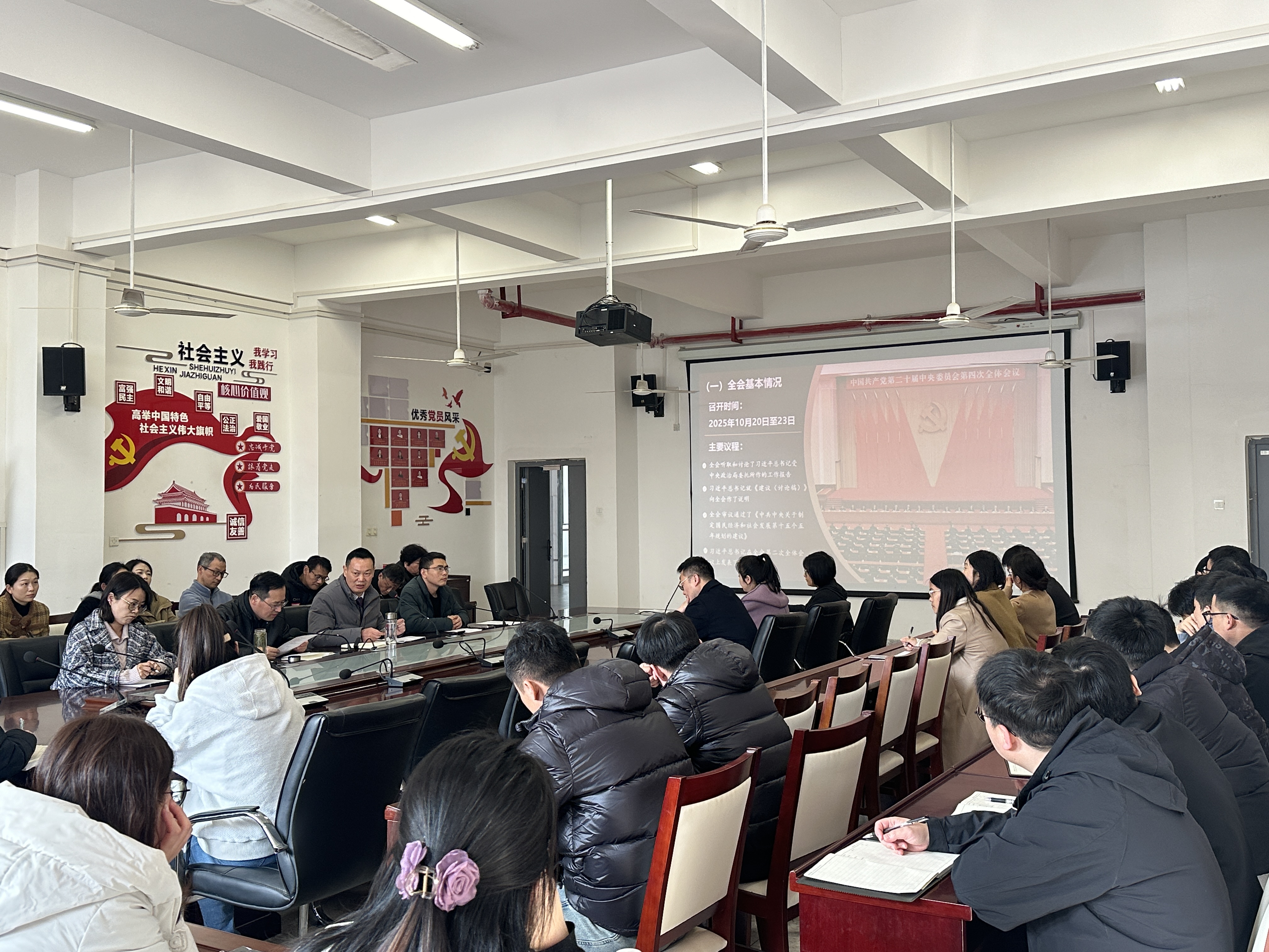 12月10日下午,机电工程学院在机电楼二楼会议室开展党的二十届四中全会精神专题宣讲暨十二月份教职工政治理论学习,该院全体教职工参会,会议由该院院长胡木林主持。